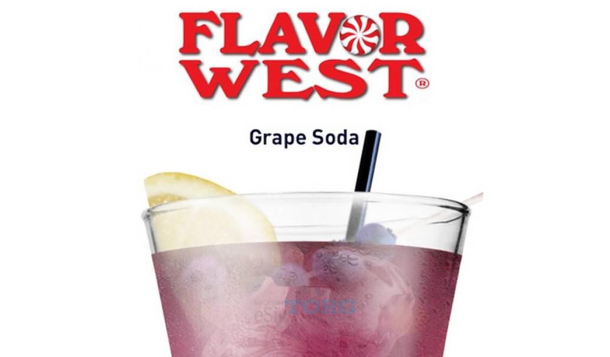 Газировка со вкусом винограда — Grape Soda от Flavor West (США). Данный концентрат обеспечивает насыщенный, свежий, в меру сладкий пар с выраженным ароматом винограда. Обязательно попробуйте в чистом виде или в сочетании с другими фруктово-ягодными, прочими аромами. Рекомендуемая концентрация — 10% (при смешиваяании в чистом виде) и 6.5% в миксах.